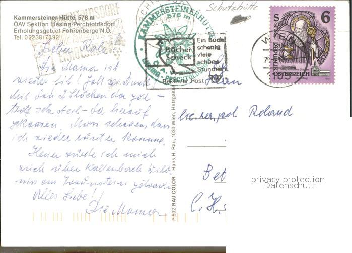 71566874 alte Postkarte Kammersteiner Huette Schutzhuette Erholungsgebiet Foehrenberge postalisch gelaufen Erhaltung siehe scans KatCode: 11390127031719