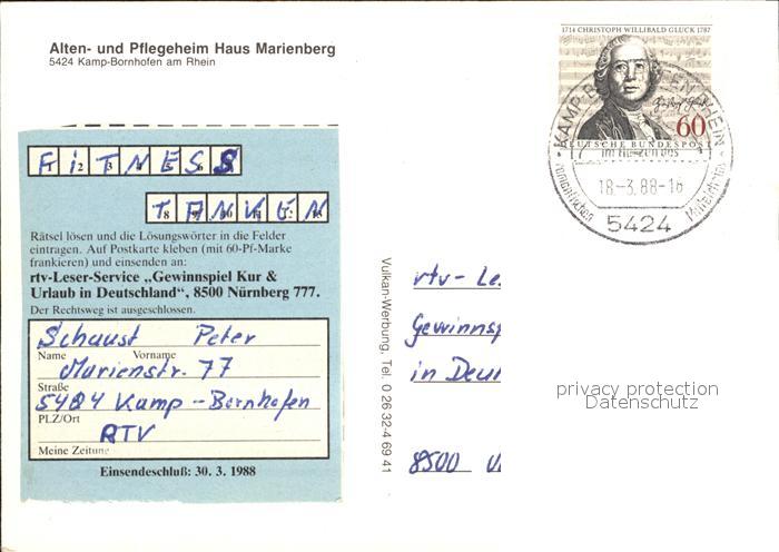 72449639 alte Postkarte Kamp-Bornhofen Alten- und Pflegeheim Haus Marienberg postalisch gelaufen Erhaltung siehe scans KatCode: 11110007141066