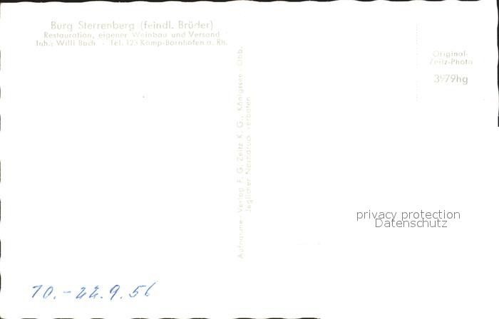 72197926 Kamp-Bornhofen Burg Sterrenberg Blick vom Burgrestaurant Terrasse postalisch nicht gelaufen Erhaltung siehe scans KatCode: 11110007141066