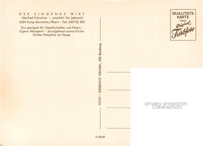 73759956 Kamp-Bornhofen Der Singende Wirt Theke postalisch nicht gelaufen Erhaltung siehe scans [FriedD77] KatCode: 11110007141066