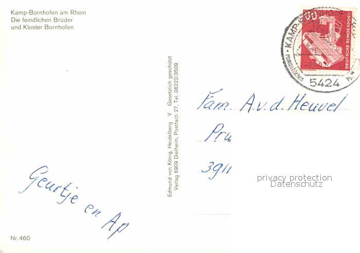 72919414 alte Postkarte Kamp-Bornhofen Feindlichen Brueder Kloster Bornhofen postalisch gelaufen Erhaltung siehe scans [NatalD47] KatCode: 11110007141066