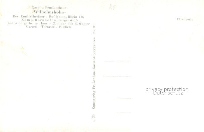 73645119 Kamp-Bornhofen Gast und Pensionshaus Wilhelmshoehe postalisch nicht gelaufen Erhaltung siehe scans [WerneD78] KatCode: 11110007141066