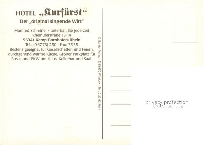 73735180 Kamp-Bornhofen Hotel Kurfuerst Der singende Wirt Manfred Schreiner postalisch nicht gelaufen Erhaltung siehe scans [LiesaD40] KatCode: 11110007141066
