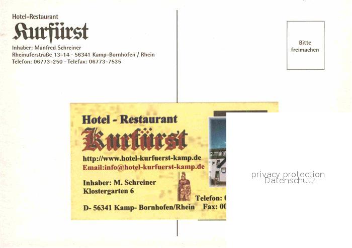 72682713 Kamp-Bornhofen Hotel Restaurant Kurfuerst San Augustin postalisch nicht gelaufen Erhaltung siehe scans [LiesaD40] KatCode: 11110007141066