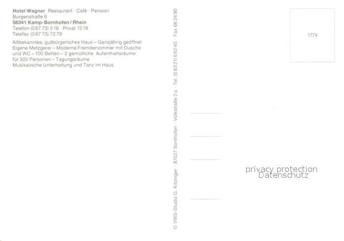 73615342 Kamp-Bornhofen Hotel Wagner Restaurant Cafe Bar Panorama postalisch nicht gelaufen Erhaltung siehe scans [WerneD78] KatCode: 11110007141066