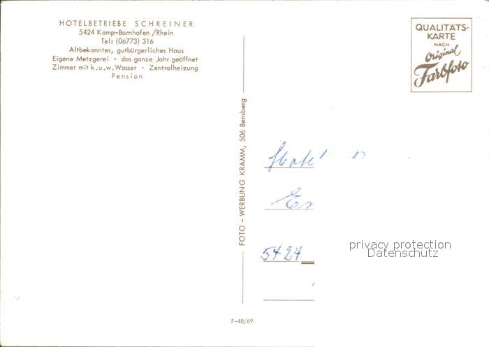 72074457 Kamp-Bornhofen Hotelbetriebe Schreiner postalisch nicht gelaufen Erhaltung siehe scans KatCode: 11110007141066