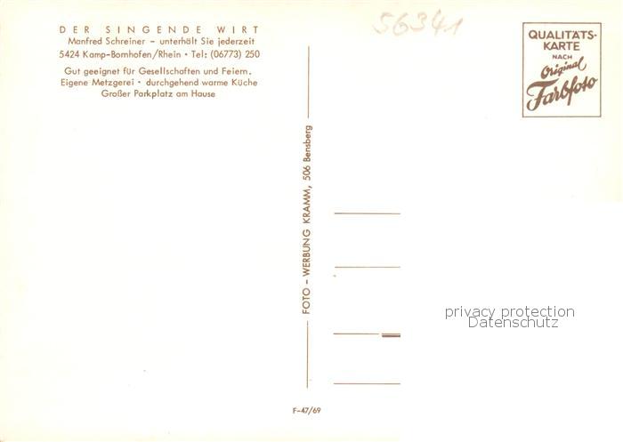 73865154 Kamp-Bornhofen Rhein Der Singende Wirt postalisch nicht gelaufen Erhaltung siehe scans [WerneD78] Wern Katcode 11110007141066