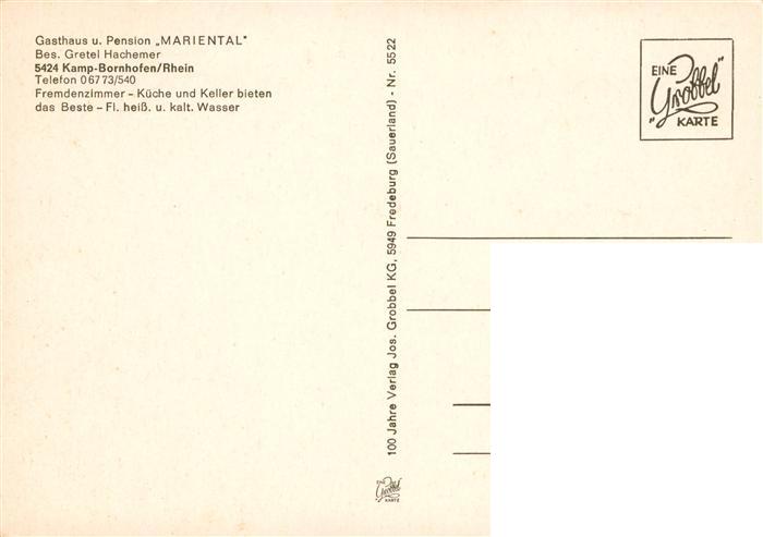 73891254 Kamp-Bornhofen Rhein Gasthaus Mariental Gastraeume postalisch nicht gelaufen Erhaltung siehe scans [WerneD78] Wern Katcode 11110007141066