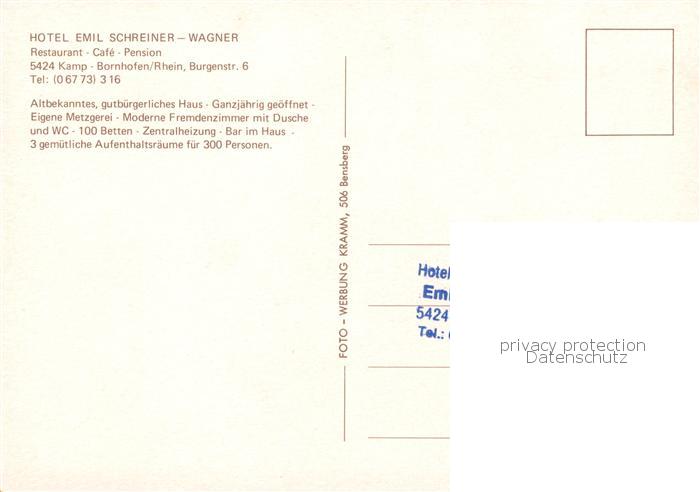 73836962 Kamp-Bornhofen Rhein Hotel Emil Schreiner Wagner Gastraum Panorama postalisch nicht gelaufen Erhaltung siehe scans [WerneD78] Wern Katcode 11110007141066