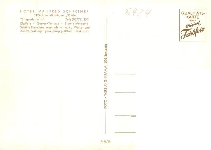 73875864 Kamp-Bornhofen Rhein Hotel Restaurant Cafe Schreiner postalisch nicht gelaufen Erhaltung siehe scans [FriedD77] Frie Katcode 11110007141066