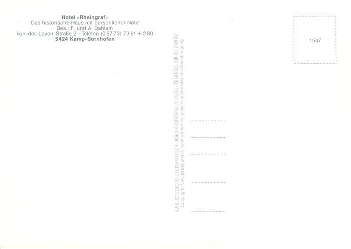 73882568 Kamp-Bornhofen Rhein Hotel Rheingraf Hotel Jaegerhof Gastraeume postalisch nicht gelaufen Erhaltung siehe scans [WerneD78] Wern Katcode 11110007141066