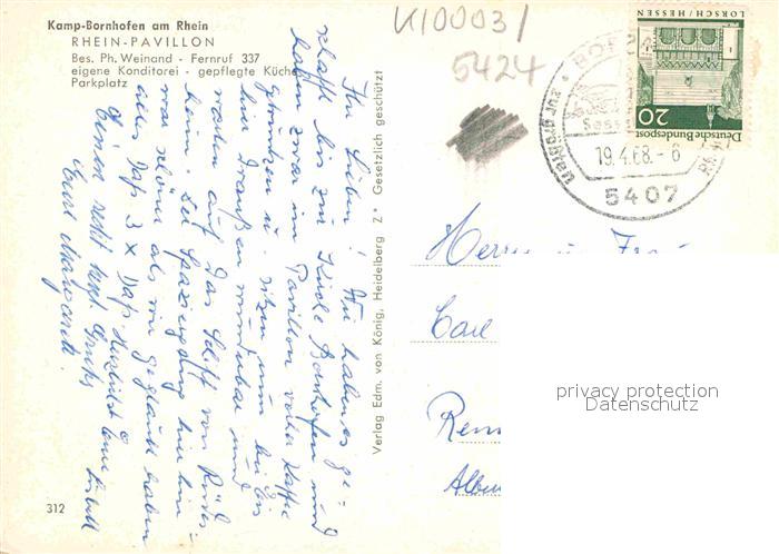 72815296 alte Postkarte Kamp-Bornhofen Rhein-Pavillon postalisch gelaufen Erhaltung siehe scans [NatalD47] KatCode: 11110007141066