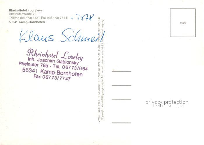 73845196 Kamp-Bornhofen Rhein Rhein Hotel Loreley Gaststube Festtafel Panorama postalisch nicht gelaufen Erhaltung siehe scans [WerneD78] Wern Katcode 11110007141066