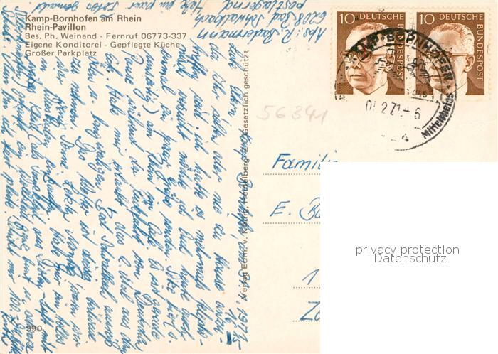 73865297 Kamp-Bornhofen Rhein Rhein-Pavillon Restaurant postalisch gelaufen Erhaltung siehe scans [FriedD77] alte Postkarte Frie Katcode 11110007141066