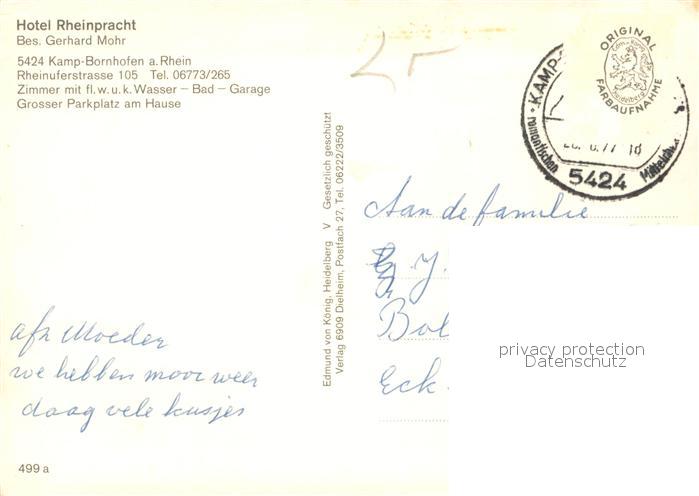 73654107 Kamp-Bornhofen Rheinpartie Hotel Rheinpracht postalisch nicht gelaufen Erhaltung siehe scans [WerneD78] KatCode: 11110007141066