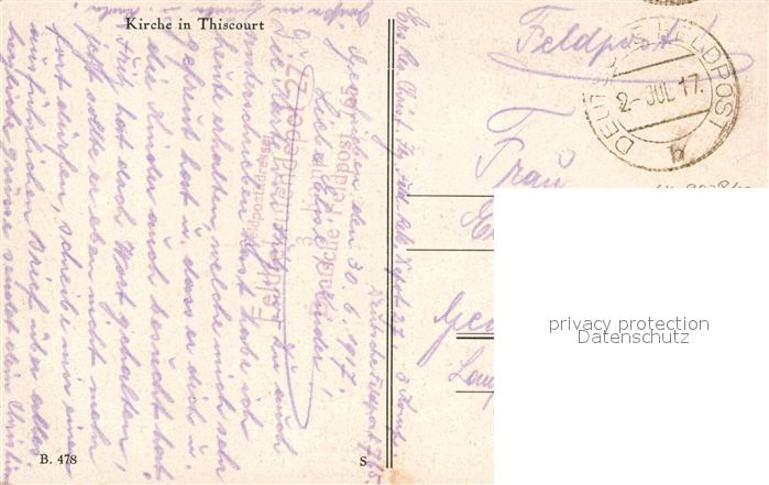 73337907 carte postale Kamp Heide Kirche in Thiscourt postalisch gelaufen Feldpost Erhaltung siehe scans [LiesaD40] KatCode: 11070011003705