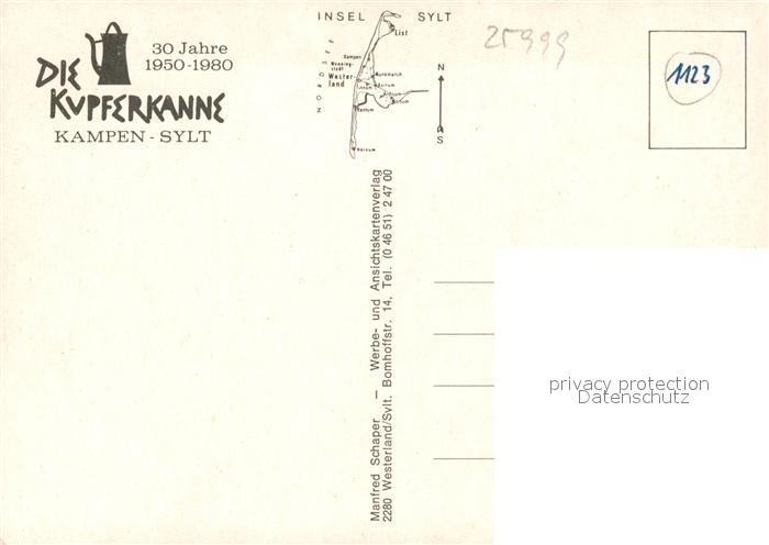 73568853 Kampen Sylt Die Kupferkanne Gaststaette Restaurant postalisch nicht gelaufen Erhaltung siehe scans [FriedD77] KatCode: 11110001054061