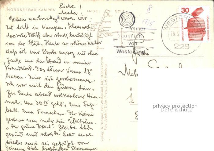 71987905 alte Postkarte Kampen Sylt Fliegeraufnahme postalisch gelaufen Erhaltung siehe scans KatCode: 11110001054061