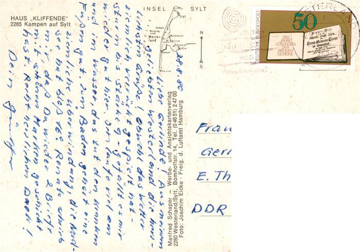73946911 alte Postkarte Kampen Sylt Haus Kliffende Kuestenpanorama postalisch gelaufen Fliegeraufnahme Erhaltung siehe scans [FriedD77] KatCode: 11110001054061
