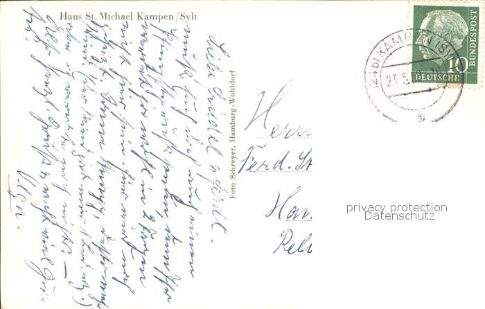 72062482 alte Postkarte Kampen Sylt Haus St Michael postalisch gelaufen Erhaltung siehe scans KatCode: 11110001054061