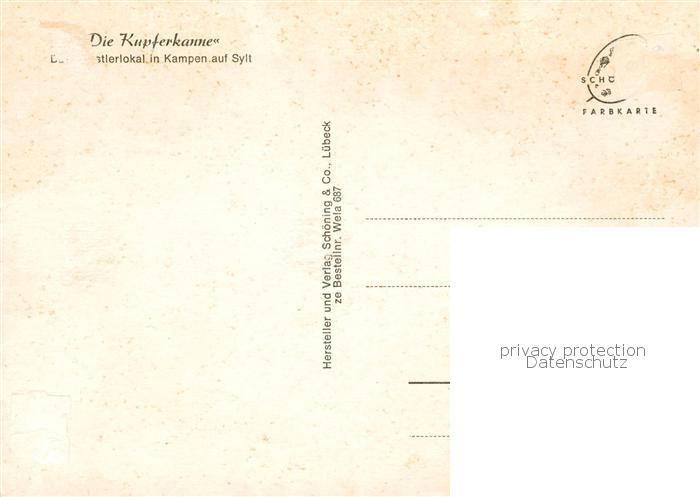 73843639 alte Postkarte Kampen Sylt Kuenstlerlokal Die Kupferkanne postalisch gelaufen Erhaltung siehe scans [WerneD78] KatCode: 11110001054061