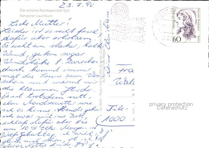 72597286 alte Postkarte Kampen Sylt Leuchtturm Nordseeinsel postalisch gelaufen Erhaltung siehe scans [FriedD77] KatCode: 11110001054061