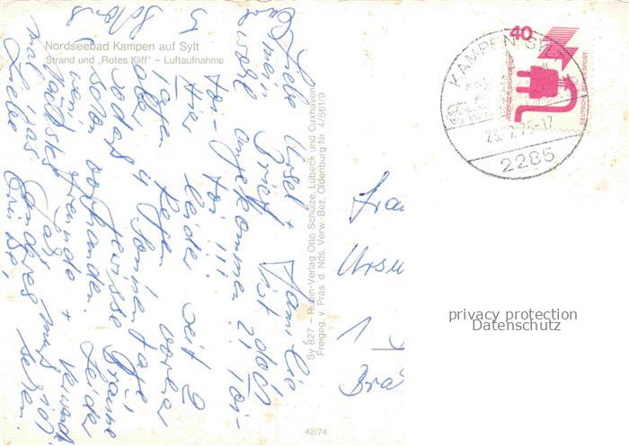 74156329 alte Postkarte Kampen Sylt Nordseebad Rotes-Kliff Strand Strandkoerbe Duenen Meer Sylt Heide postalisch gelaufen Fliegeraufnahme Erhaltung siehe scans [Karloger] KatCode: 11110001054061