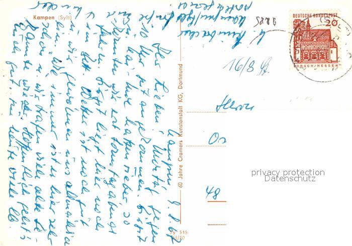 72713439 alte Postkarte Kampen Sylt Nordseebad Strand Fliegeraufnahme postalisch gelaufen Erhaltung siehe scans [FriedD77] KatCode: 11110001054061