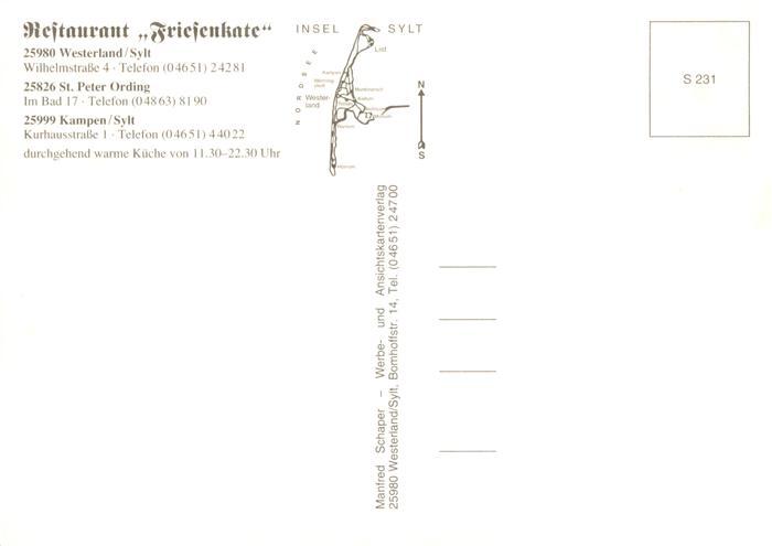 73885920 Kampen Sylt Restaurant Friesenkate in Kampen Westerland und St Peter Ording Freiterrasse postalisch nicht gelaufen Erhaltung siehe scans [WerneD78] KatCode: 11110001054061