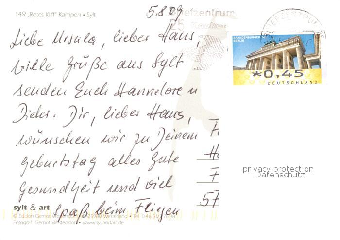 73294368 alte Postkarte Kampen Sylt Rotes Kliff Strand postalisch gelaufen Erhaltung siehe scans [FriedD77] KatCode: 11110001054061