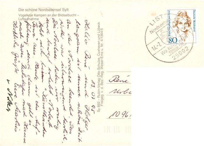 73905154 alte Postkarte Kampen Sylt Vogelkoje Kampen an der Blidselbucht Fliegeraufnahme postalisch gelaufen Erhaltung siehe scans [FriedD77] KatCode: 11110001054061
