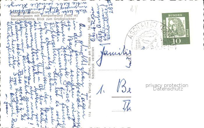 72424896 alte Postkarte Kampenwand Chiemgau Bergbahn Steinlingalm Berggasthof Panorama Blick vom Grossglockner Kind Schafe postalisch gelaufen Erhaltung siehe scans KatCode: 11110009187114