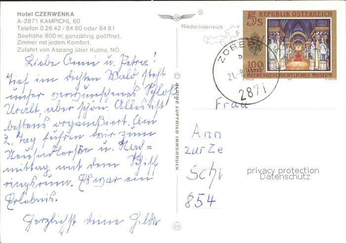 72013078 alte Postkarte Kampichl Hotel Czerwenka Fliegeraufnahme postalisch gelaufen Erhaltung siehe scans KatCode: 11390221060101