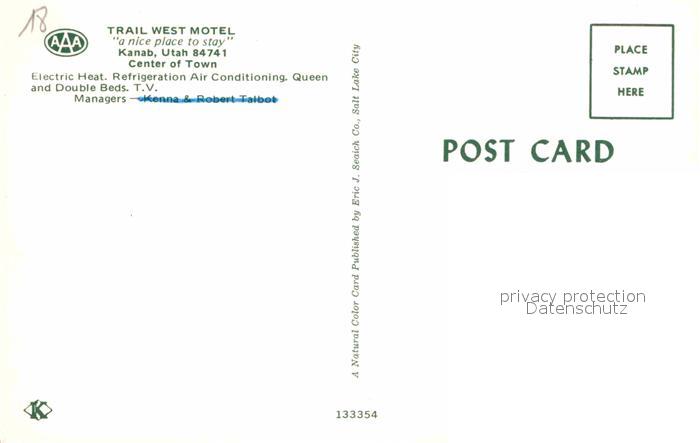 72747912 Kanab Trail West Motel postalisch nicht gelaufen Erhaltung siehe scans [FriedD77] KatCode: 14140470000000