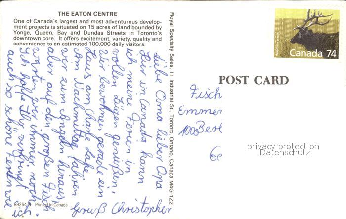 Kanada Eaton Centre postalisch nicht gelaufen Erhaltung siehe scans