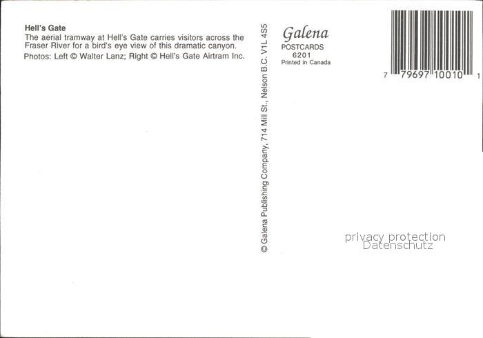 Kanada Hells Gate Seilbahn postalisch nicht gelaufen Erhaltung siehe scans