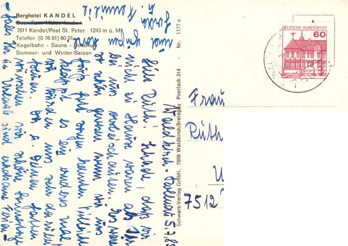 73929868 alte Postkarte Kandel Breisgau Berghotel Kandel Gastraeume postalisch gelaufen Erhaltung siehe scans [FriedD77] KatCode: 11110008316056