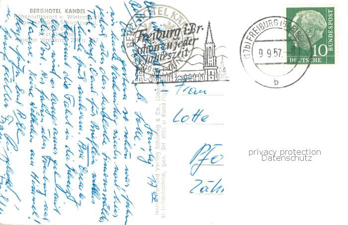 73778073 alte Postkarte Kandel Breisgau Berghotel Kandel mit Blick auf Waldkirch Fliegeraufnahme postalisch gelaufen Erhaltung siehe scans [WerneD78] KatCode: 11110008316056