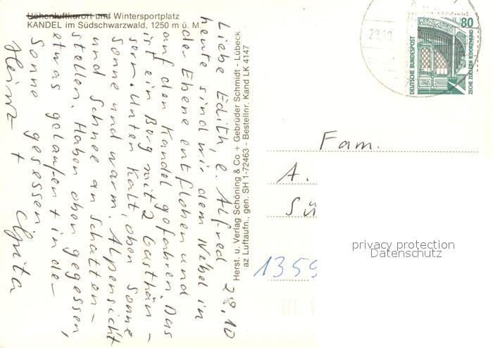 73596669 alte Postkarte Kandel Breisgau Fliegeraufnahme postalisch gelaufen Erhaltung siehe scans [WerneD78] KatCode: 11110008316056