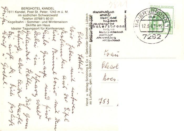 73929914 alte Postkarte Kandel Breisgau Fliegeraufnahme mit Berghotel Berggasthaus Kandelhof und Pius Bergkapelle postalisch gelaufen Erhaltung siehe scans [FriedD77] KatCode: 11110008316056