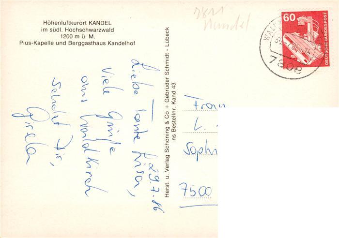73929409 alte Postkarte Kandel Breisgau Pius Kapelle und Berggasthaus Kandelhof postalisch gelaufen Erhaltung siehe scans [FriedD77] KatCode: 11110008316056