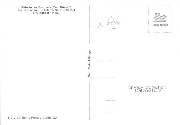 41801305 Kandel Pfalz Historisches Gasthaus zum Roessel postalisch nicht gelaufen Erhaltung siehe scans KatCode: 11110007334013
