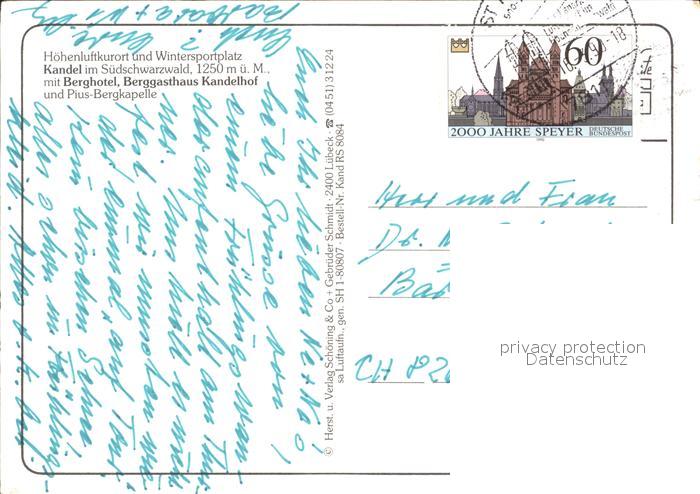 72219706 alte Postkarte Kandel Waldkirch Breisgau Berghotel Kandelhof Pius Bergkapelle Fliegeraufnahme postalisch gelaufen Erhaltung siehe scans KatCode: 11110008316056