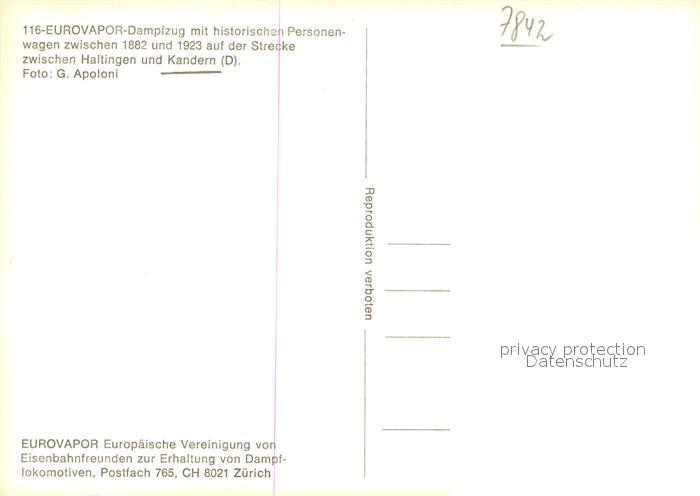 73549261 Kandern Eurovapor Dampfzug mit hist Personenwagen postalisch nicht gelaufen Erhaltung siehe scans [WerneD78] KatCode: 11110008336045