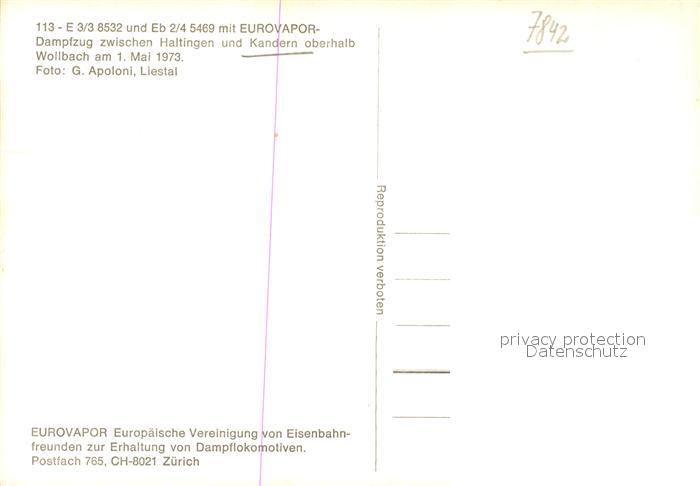 73549267 Kandern Eurovapor Dampfzug postalisch nicht gelaufen Erhaltung siehe scans [WerneD78] KatCode: 11110008336045