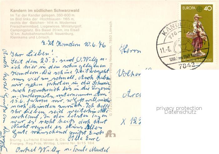 73752469 alte Postkarte Kandern Fliegeraufnahme mit Hochblauen und Belchen postalisch gelaufen Erhaltung siehe scans [WerneD78] KatCode: 11110008336045