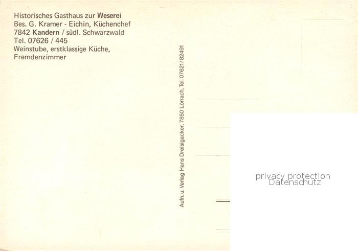 73174852 Kandern Gasthaus zur Weserei postalisch nicht gelaufen Erhaltung siehe scans [NatalD47] KatCode: 11110008336045