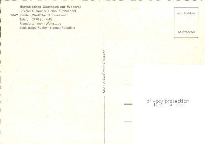 72507924 Kandern Historisches Gasthaus zur Weserei Gastraum Eingang postalisch nicht gelaufen Erhaltung siehe scans KatCode: 11110008336045