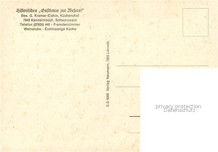 73323290 Kandern Historisches Gasthaus zur Weserei Schwarzwald postalisch nicht gelaufen Erhaltung siehe scans [FriedD77] KatCode: 11110008336045
