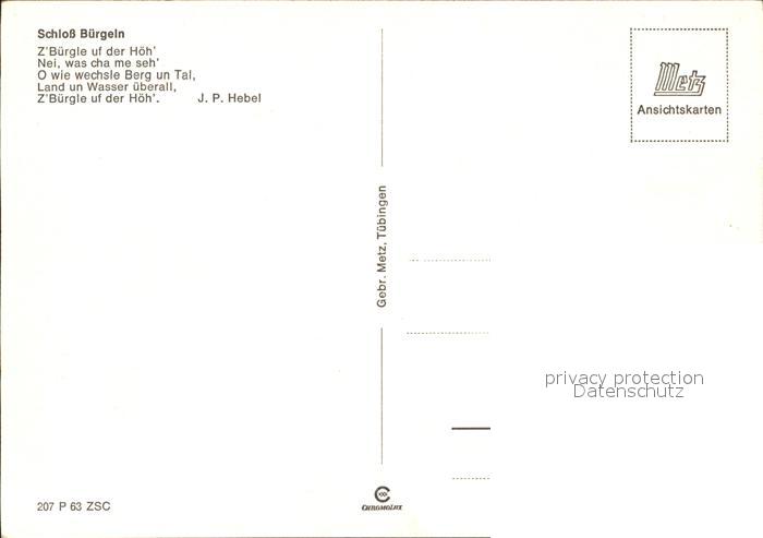 72577079 Kandern Schloss Buergeln Gedicht J.P. Hebel postalisch nicht gelaufen Erhaltung siehe scans [FriedD77] KatCode: 11110008336045